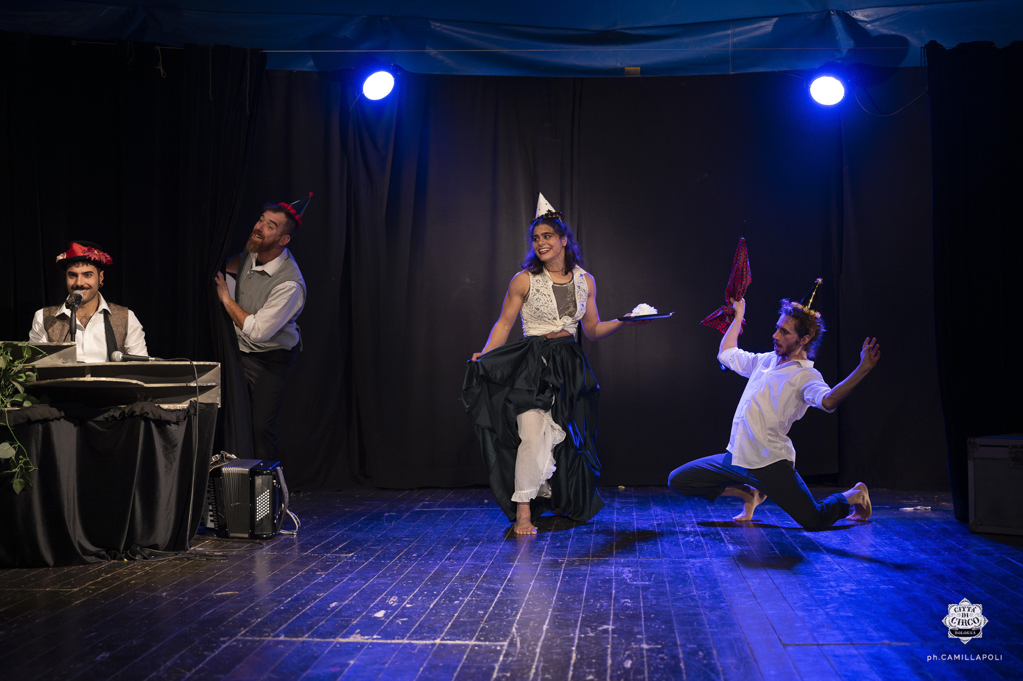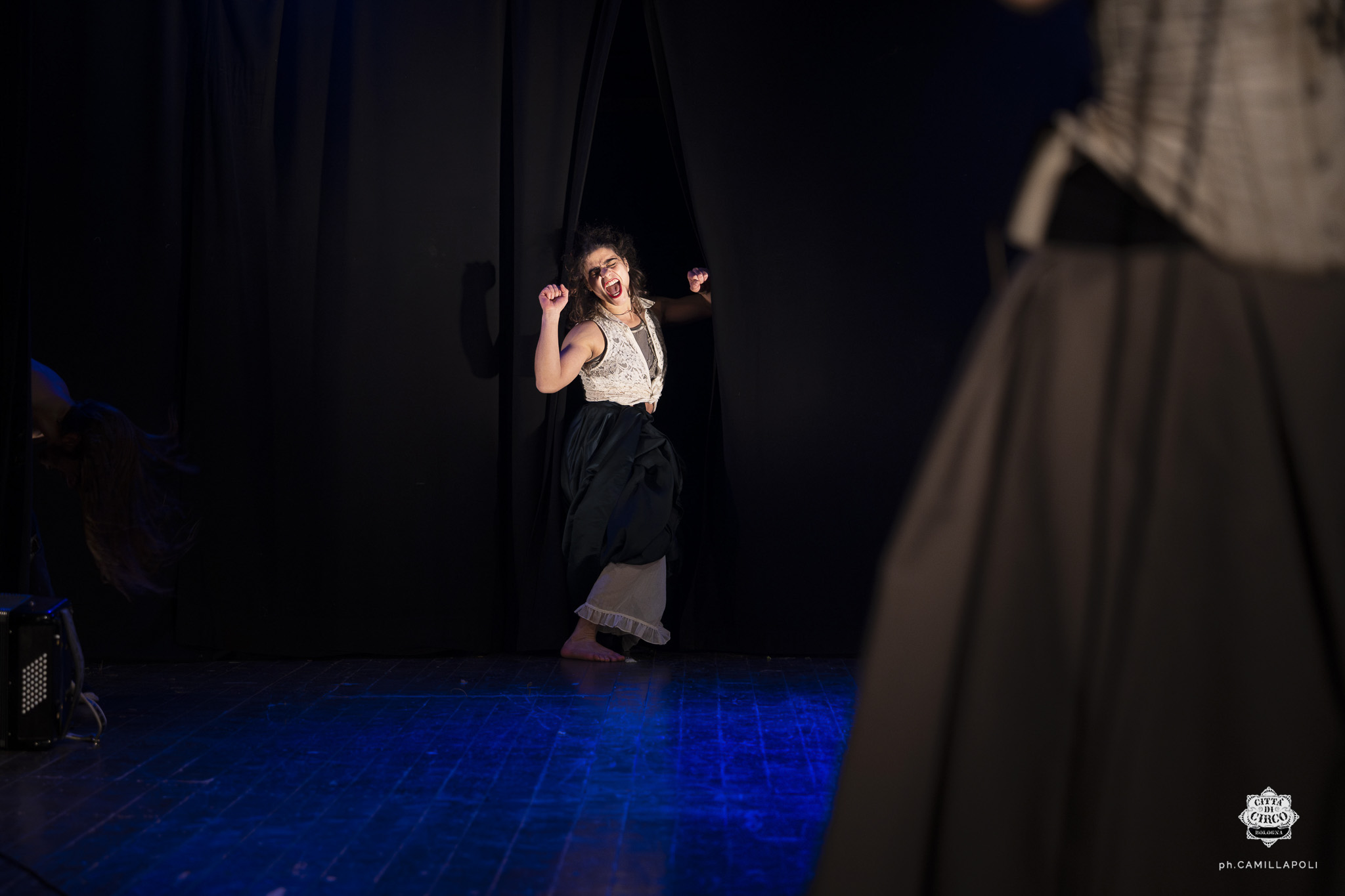 Joining the Italian company in summer 2021, Eleftheria became involved in two vibrant productions, “Hesperus” and “Psychomic”. Their shows, a mix of circus theatre, music and comedy pushed boundaries and delighted audiences across Italy, with special invitations to festivals in France.