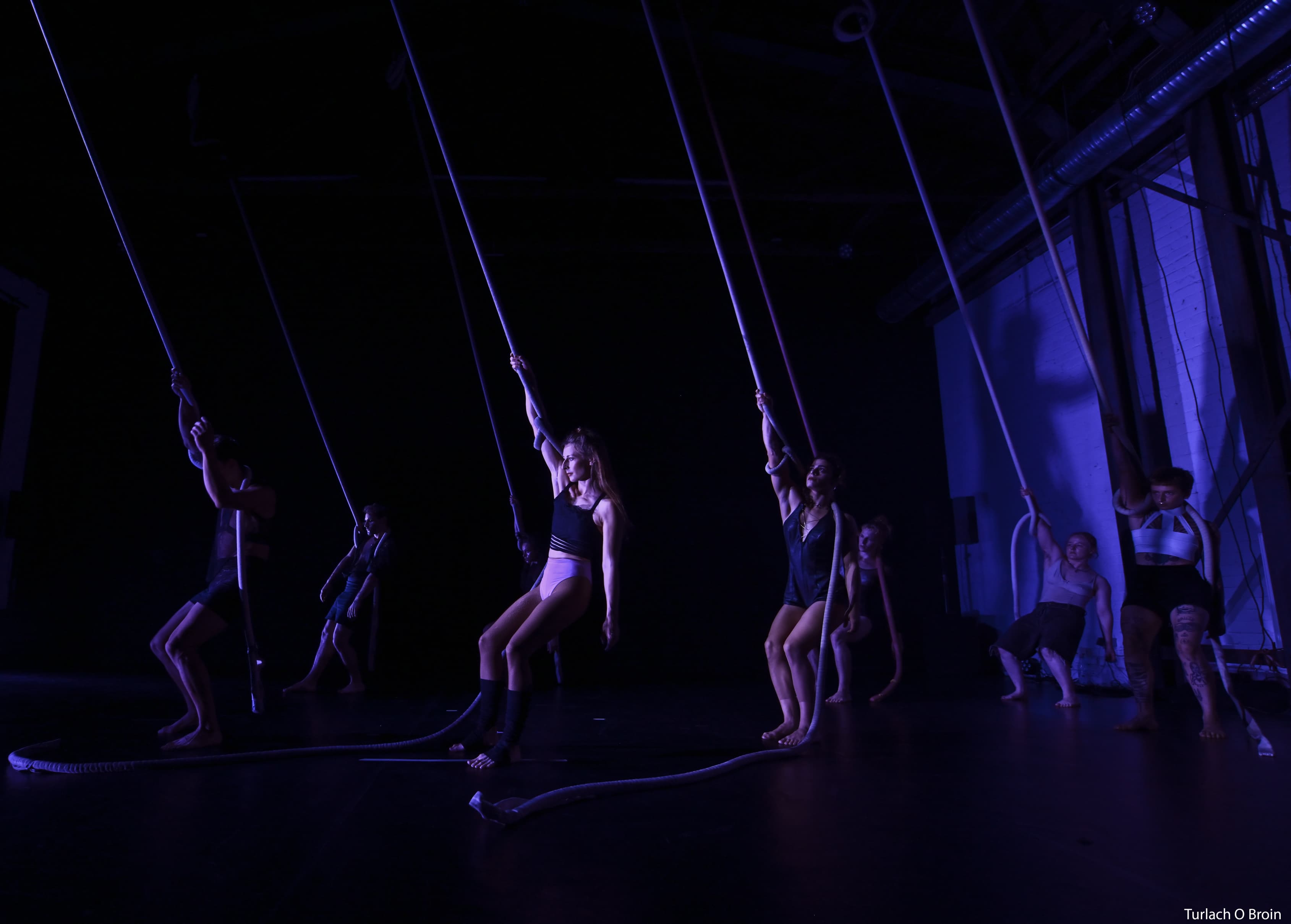 SWARM, directed by Moritz Lucht, artistic director of Black Box Circus, is a dynamic Performance fo 8 ropes and 8 artists inspired by Shuudan Koudou, the Japanese art of precision walking. The choreography highlights synchronized running, swinging movements, and rope routines, all set to music, showcasing the beauty of unity and precise motion.